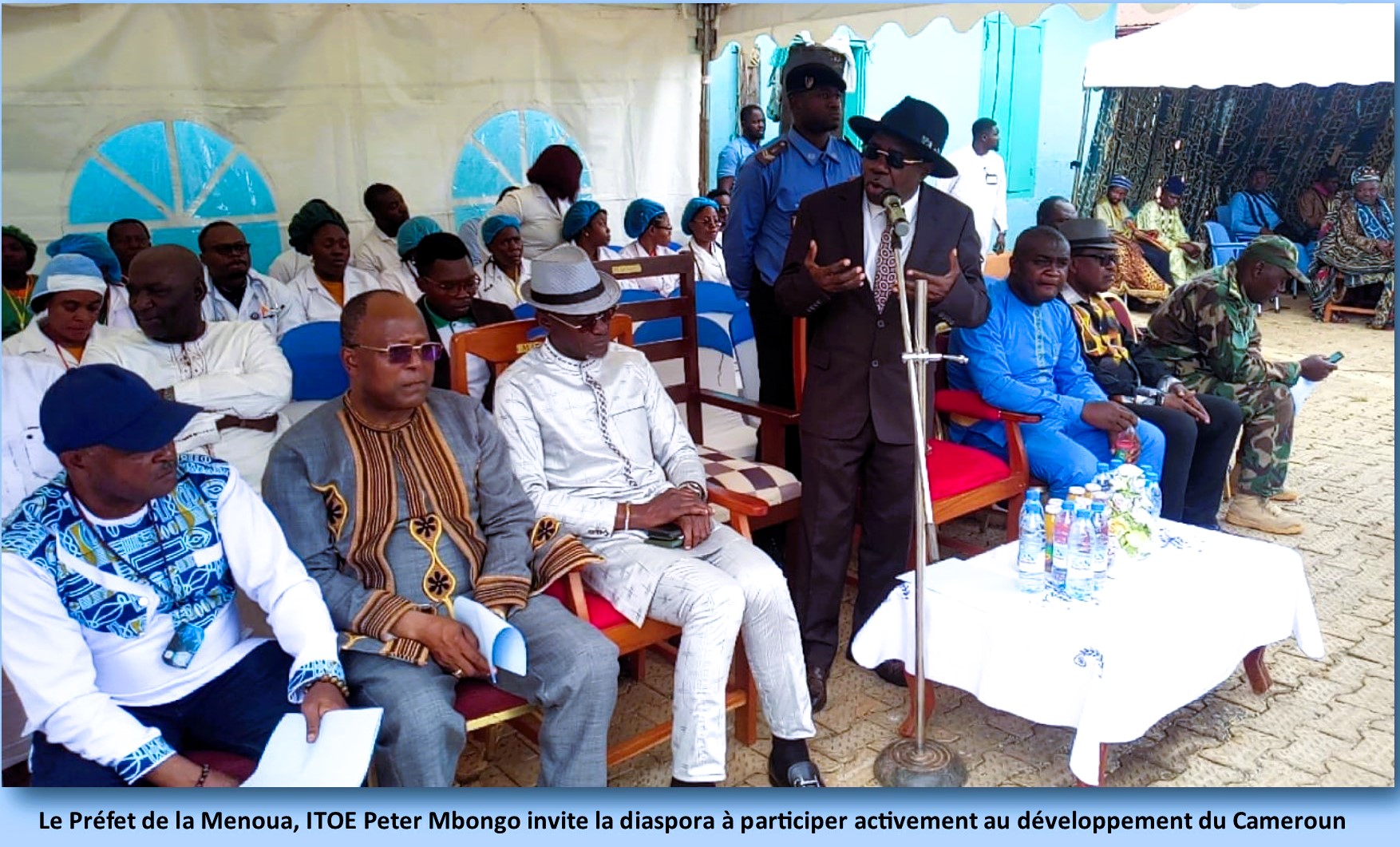 Jean Paul DJOUMESSI était très content de sa fille-là. Il dit qu’elle fait partie des enfants qui ont entendu le cri qu’il a lancé en 2021. Le cri-là c’est que la diaspora apporte se mobilise pour contribuer au développement du département de la Menoua. Celui qui apporte le macaroni apporte, celui qui apporte les équipements médicaux apporte, celui qui apporte même le Caterpillar pour arranger la route apporte, celui qui apporte la coopération à l’Université de Dschang apporte, celui qui peut apporter les partenariats aux Communes apporte. On veut que la diaspora Menouatique ne coupe pas le cordon ombilical avec le village. Il a dit qu’il y a un conteneur de 40 pieds au port. Que quand xa va sortir on va donner des dons aux autres hôpitaux d’arrondissements. Parce qu’on ne veut pas que tous les malades se déversent à l’Hôpital Régional Annexe de Dschang. Il faut qu’on équipe les autres hôpitaux pour qu’ils soient capables de prendre en charge la plupart des patients qui s’adressent à eux.