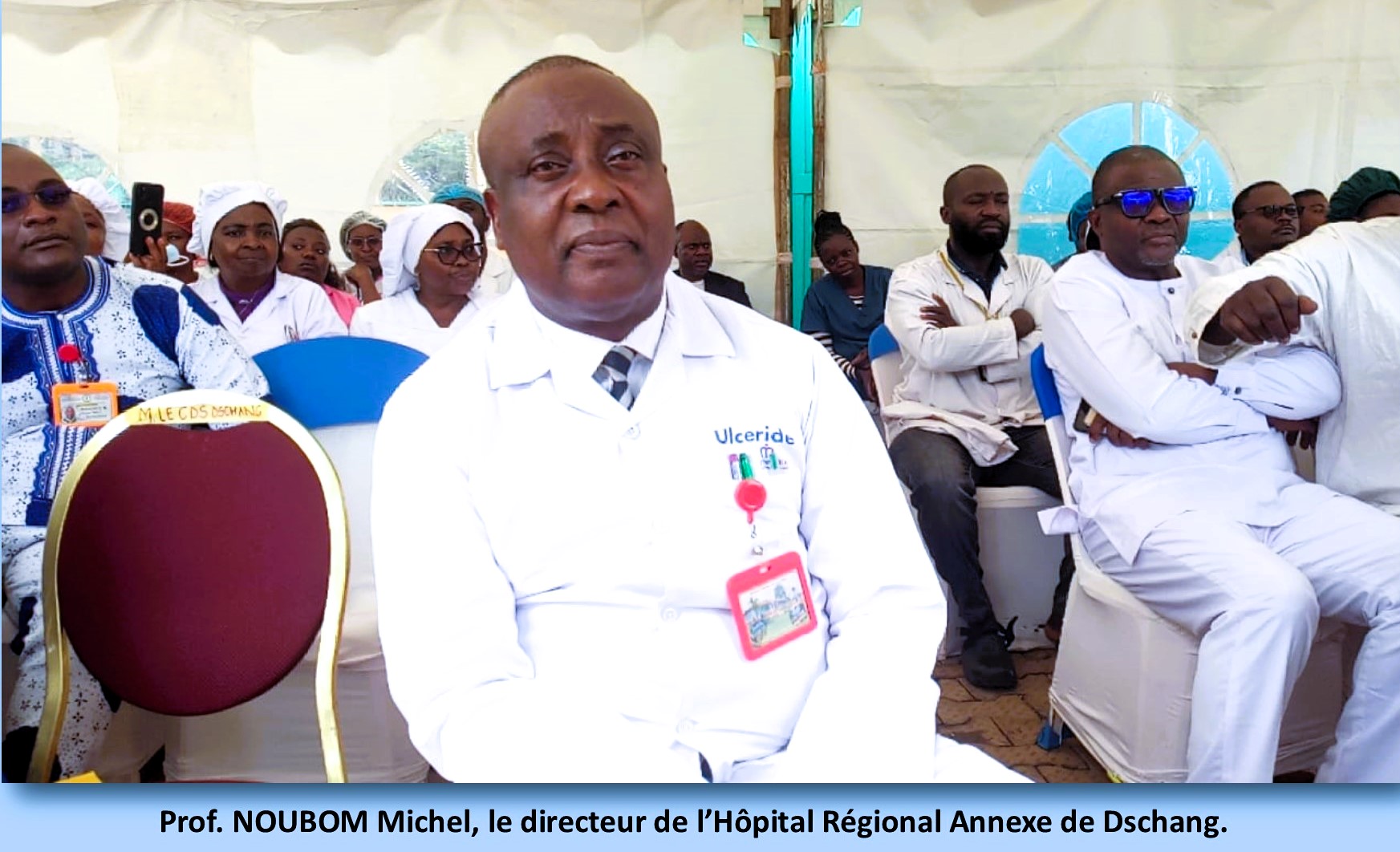 Je vais trahir un secret pour vous dire. Les Urgences de l’Hôpital Régional Annexe de Dschang que vous voyez est une conséquence de l’accident qui avait fait plus de 55 morts à la falaise-là. Comme les blessés étaient couchés par terre à l’accueil, cela a énervé le professeur NOUBOM Michel. Il a dit « Yééé meghéééé ! Je ne peux pas travailler dans les conditions xi ». Il a écrit une lettre pour envoyer à Yaoundé, en pleurant que « vraiment certains malades meurent ici parce qu’il n’y a pas moyens de les prendre en urgence ». Il a parlé comme xa jouska aller voir le conseil régional et c’est comme ça qu’on a construit le grand bâtiment que vous voyez derrière la photo de famille. On a équipé xa beaucoup. Si vous entrez dedans on vous dit que vous êtes toujours au 237 vous allez dire « jamais ! »