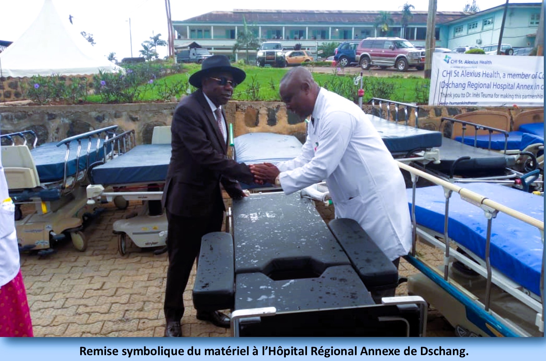 La femme-là a fait rage. Elle a chargé un conteneur de 7 fauteuils pour dialyses, 5 tables de chevet avec roulets, 2 lits d’hospitalisation avec matelas, 3 lits d’accouchement dernier cri, 6 lits de transport de malades, 1 table d’opération électrique avec scialytique, 6 défibrillateurs, 1 chariot, 1 machine d’échographie, 1 appareil de radiographie, 01 numériseur de cassettes, 1 chariot pour médicaments d’anesthésie, 1 machine d’anesthésie/respirateur et une table d’examen et de réanimation néonatale (table radiante). On dit que Dschang est le seul hôpital de la région de l’Ouest à disposer d’une table radiante. Elle a envoyé tout cela à notre Hôpital Régional Annexe. Qui dit mieux !